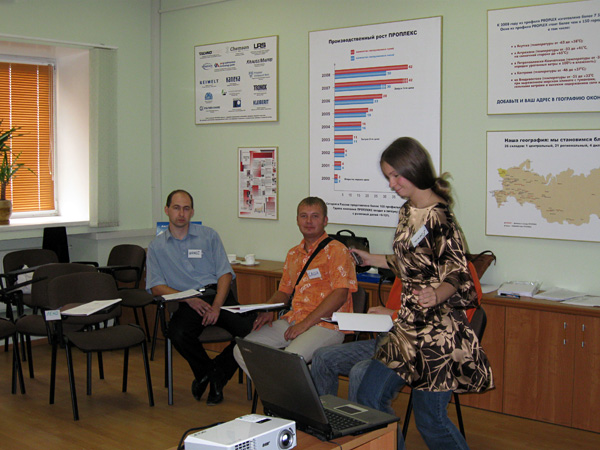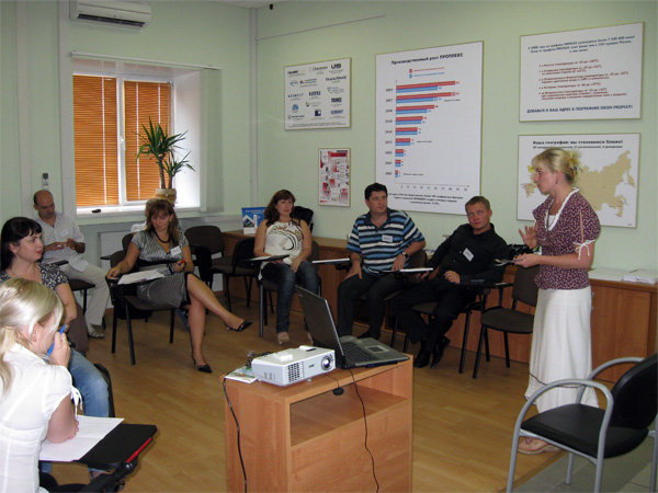 В конце июля в учебном классе Центрального офиса Группы компаний ПРОПЛЕКС в г.Подольске прошли первые тренинги из новой программы обучения-2009, подготовленные отделом маркетинга и рекламы "Развитие креативности или методы поиска новых идей".